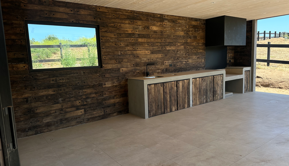 Amplio y acogedor espacio de living y comedor con cocina integrada, que se conecta de forma orgánica con un quincho y terraza techada, ideal para reuniones familiares y sociales. Incorpora un gran mueble en obra, estético y funcional.